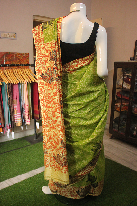 Screen Printed Murshidabad Silk, with blouse piece included.