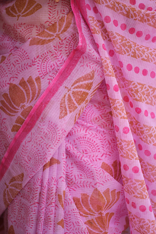 This is a KOTA , block printed saree, crafted by skilled artisans of Bengal, are a perfect summer essential - lightweight, breathable and elegantly simple.