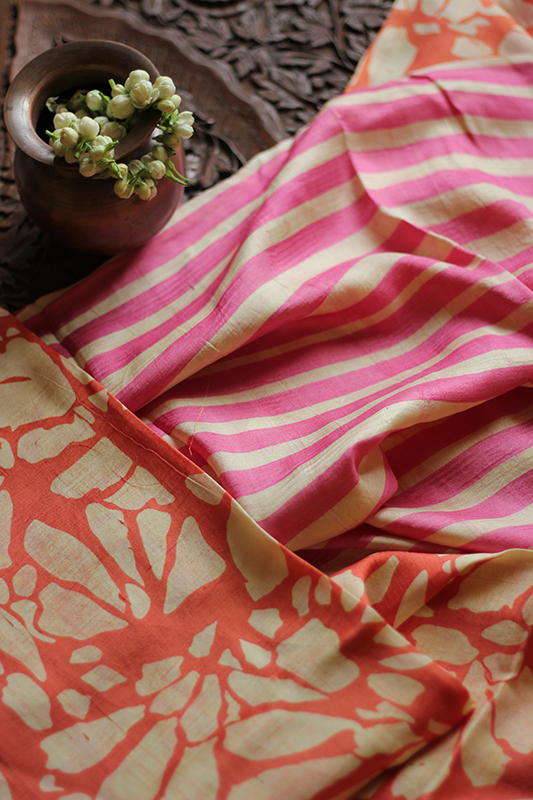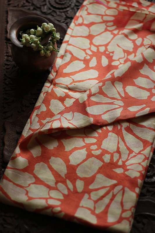 Crafted from luxurious mulberry silk, this saree features exquisite discharge prints that add depth and elegance to its design. The fabric drapes effortlessly and offers a graceful fall, making it perfect for any occasion. Lightweight and easy to handle, this saree ensures both style and comfort for all-day wear.