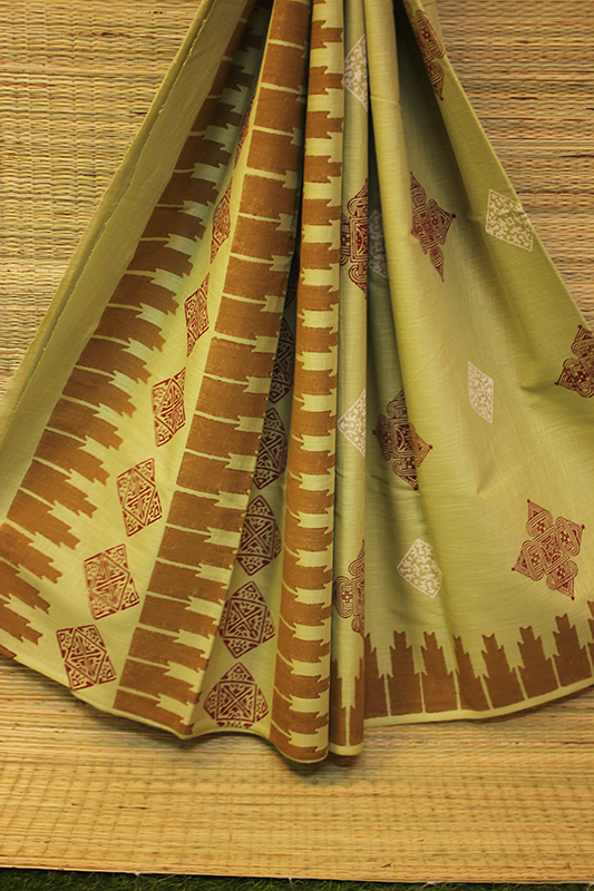 This beautiful cotton saree is a masterpiece of traditional craftsmanship, featuring hand block-printed motifs that bring a unique charm to its design. The saree's pure cotton fabric is soft, breathable, and drapes effortlessly, making it a comfortable yet stylish choice for any occasion. Each motif is meticulously hand-stamped using wooden blocks, a time-honored technique that ensures every pattern is slightly distinct, adding to the saree's uniqueness. The traditional motifs—whether florals, paisleys, or geometric designs—are rendered with precision and care, reflecting the rich cultural heritage and artistic skill of the artisans. The harmonious blend of colors and patterns creates a visually striking piece that can effortlessly elevate any wardrobe. Whether paired with traditional jewelry for a festive occasion or worn more casually, this saree is a versatile addition that embodies both elegance and heritage, making it a must-have for anyone who appreciates the beauty of handcrafted textiles.